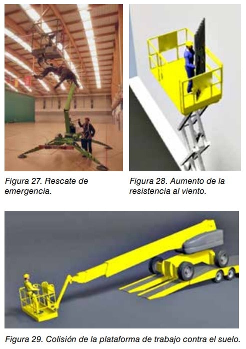 Principios para el diseño. Se permite anular la parada de emergencia y el sistema de sensor de carga para rescatar a un operario atrapado y/o incapacitado, pero tiene que quedar una evidencia clara de que ha sido utilizado o manejado.