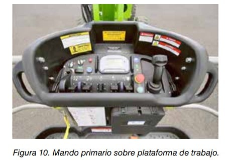 La plataforma debe tener dos sistemas de mando, un primario y un secundario.El primario debe estar sobre la plataforma y accesible para el operador. Ver figura 10.