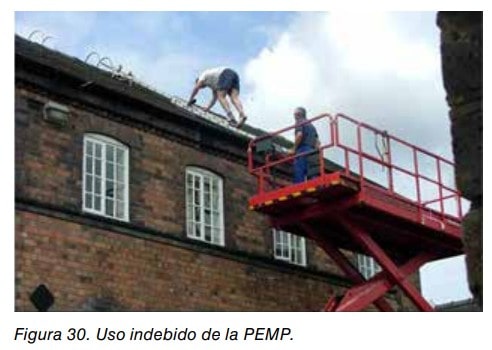 - No se deben utilizar elementos auxiliares situados sobre la plataforma de trabajo, para ganar altura, como escaleras, tablones, andamios, etc. Ver figura 30.