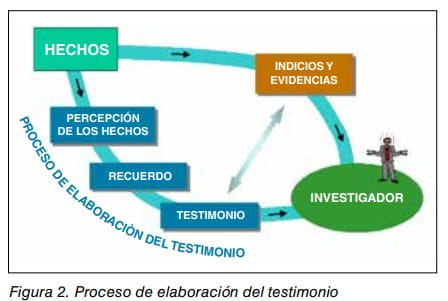 Esta es la materia con la que ha de elaborar el relato que le pedimos, el testimonio. Elaboración del testimonio Cuando el testigo, respondiendo a nuestra petición, elabora su testimonio, está actualizando los productos de las etapas anteriores relacionadas con el accidente, percepción selectiva, memoria, recuerdo y relato actual. Todo ello unido a las sensaciones iniciales y las recuperadas con sus modificaciones incorporadas.