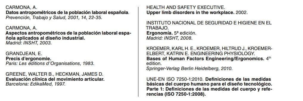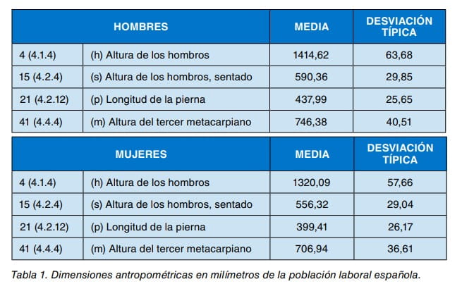 Los valores proporcionados por Carmona (2001) se muestran en la tabla 1, donde el número entre paréntesis indica la referencia de la dimensión en la norma UNEEN ISO 7250-1:2010.
