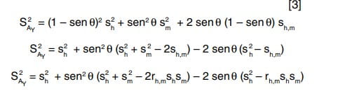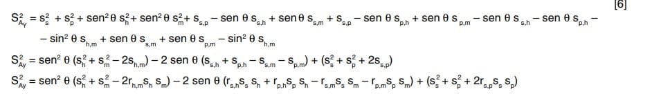 La ecuación 3 muestra el desarrollo para la obtención de la varianza de la componente de ordenadas del alcance. En este caso es necesario realizar varios pasos intermedios, ya que el valor de Ay (ecuación 1) es una combinación doble de las variables h y m.