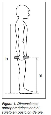 En posición de pie, se pueden utilizar dos dimensiones antropométricas para estimar el alcance en el plano sagital: la altura de los hombros y la altura del tercer metacarpiano (figura 1). La definición de éstas, según Carmona (2001), es: