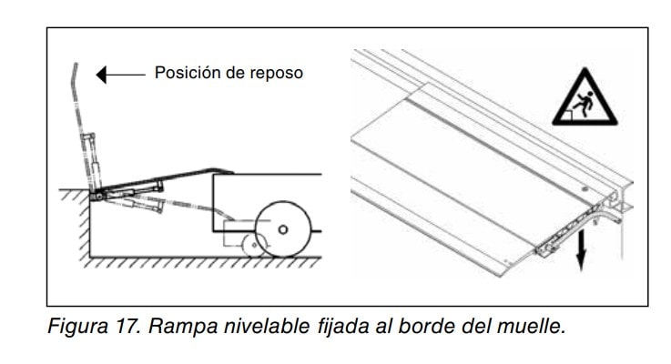 • Debe estar totalmente prohibido el maniobrar en la parte superior del muelle sin estar posicionado el vehículo.