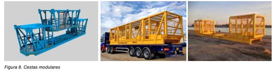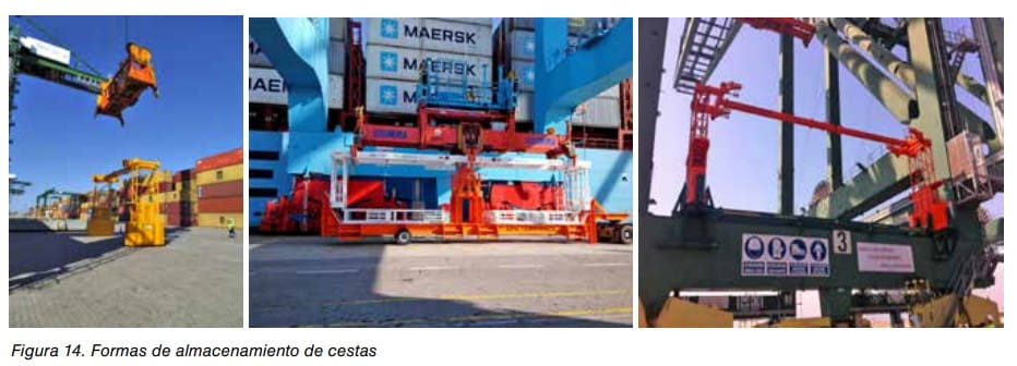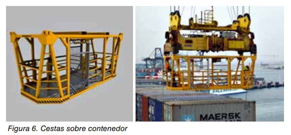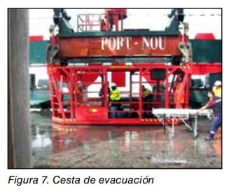 También existen cestas para la evacuación en caso de emergencia. Son similares a las utilizadas para realizar trabajos de trincaje y destrincaje. Ver figura 7.