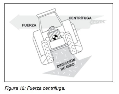 El valor de la fuerza centrífuga en cada momento es función de la masa, la velocidad del tractor y de la curvatura de la trayectoria.
