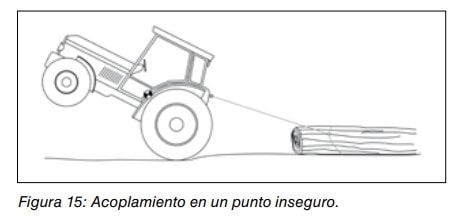 El punto de enganche del tractor está diseñado para evitar el vuelco hacia atrás cuando se remolcan cargas. Pero este diseño dejará de ser efectivo para tal fin si la carga está enganchada en cualquier otro punto del tractor que no sea el diseñado específicamente para ello.