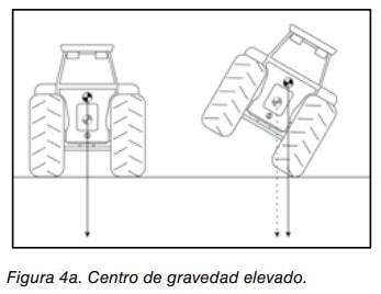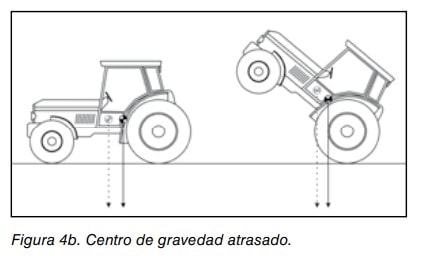 Por tanto, puede afirmarse que un tractor será más estable cuanto menor sea la altura del centro de gravedad y cuando su centro de gravedad esté más adelantado respecto del eje trasero (figuras 4a y 4b).