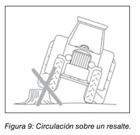 La presencia de baches, huecos, toperas, pedruscos, tocones, amontonamientos de tierra o forraje, lindes en desnivel, zanjas o acequias pueden ocasionar el desequilibrio del tractor y provocar un vuelco.