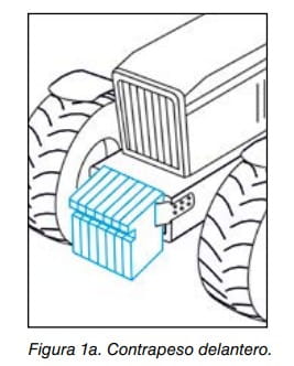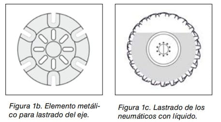 También pueden adoptarse medidas para mantener el tractor en equilibrio mediante la colocación de contrapesos o lastrando los ejes y los neumáticos (figuras 1a, 1b y 1c).
