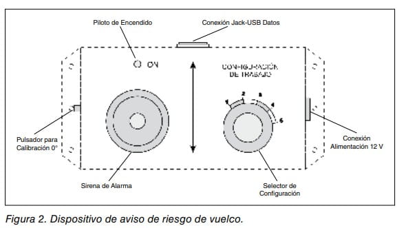 Pueden instalarse dispositivos de aviso de riesgo de vuelco que analicen la estabilidad en dinámico del tractor en cada instante y que avisen al conductor del nivel de riesgo al que está expuesto de acuerdo con el grado de estabilidad (figura 2).