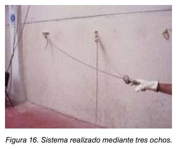 En paredes o soportes de ladrillo hueco o con cámaras de aire grandes, no se debe utilizar ninguno de estos anclajes ya que la resistencia del propio sustrato no alcanza los mínimos exigidos. Para estos casos se utilizan anclajes con espárragos pasantes, capaces de abrazar el muro en toda su anchura, aumentando la superficie sobre la cual trabaja. Utilizando convenientemente varias unidades de este tipo de anclajes, se consiguen instalaciones que cumplan con la resistencia (12 kN).