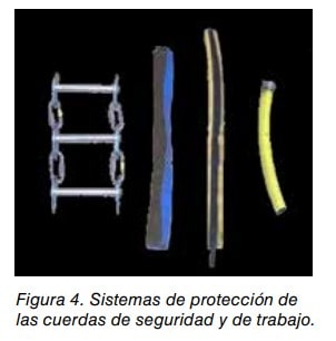 En la instalación de ambas cuerdas trabajo y seguridad es imprescindible aplicar y seguir algunas normas y procesos de seguridad específicos con objeto de protegerlas de los rozamientos que se puedan producir con aristas, bordes, filos, cantos u otros elementos, los cuales pueden provocar el corte o deterioro de las mismas. Para ello, se utilizan diferentes sistemas, técnicas o elementos tales como: fraccionamientos, desviaciones, protecciones antiroce, trípodes, pescantes, etc. Además de la protección de las cuerdas, se deben proteger los bordes cortantes, afilados, abrasivos o que puedan quemar las cuerdas instalando sobre ellos distintos sistemas de protección que eviten la fricción o roce de las cuerdas. Ver figura 4.