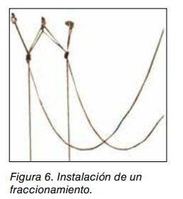 En ocasiones, para poder acceder a determinados lugares, el trabajador tiene que montar varias instalaciones de cabeceras secundarias, partiendo de una cabecera principal. A esas instalaciones de cabecera se las denomina fraccionamientos, que pueden ser de dos tipos, cortos o largos, dependiendo de la comba que tengan las cuerdas de trabajo y de seguridad.
