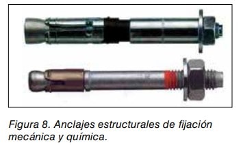 En estos casos se suelen encontrar según la forma de fijación: anclajes mecánicos y químicos (ver NTP 893 Anclajes estructurales).