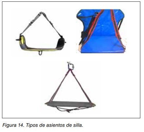 - Ventral: Se coloca en el arnés en el enganche ventral y sujeto a la altura del pecho para facilitar la acción de sentarse sobre el arnés de seguridad.