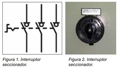 - a) Interruptor seccionador, de acuerdo con la Norma UNE-EN 60947-3 (CEI 60947-3), categoría de empleo AC-23 B o DC-23 B. La categoría de empleo AC-23 B y DC-23 B indica que el dispositivo de seccionamiento es adecuado para la conexión o la desconexión de motores u otras cargas con elevada inductividad, con alimentación en corriente alterna y en corriente continua respectivamente. La letra B posterior al número de referencia de los interruptores seccionadores indica que han sido diseñados para realizar maniobras ocasionales, quedando la letra A reservada para aquéllos capaces de realizar maniobras frecuentes, válidas también para su uso en consignación.Ver figuras 1 y 2.