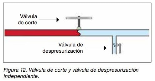 Una solución a este problema puede ser dotar a estos circuitos de válvulas de corte y despresurización. (Ver figura 12).