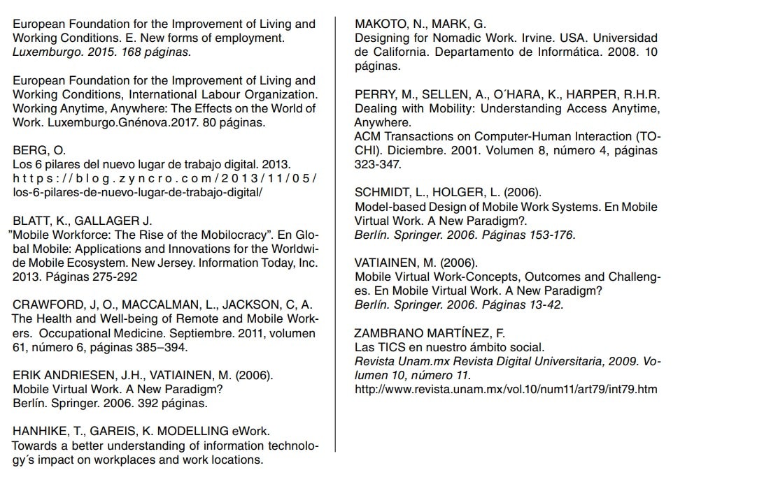 El concepto de trabajo móvil basado en las TIC se define por la Fundación Europea para la Mejora de Condiciones de Vida y Trabajo (2015) como aquel donde “el trabajador (ya sea empleado o autónomo) opera desde varias posibles localizaciones fuera de las instalaciones de su empresa, por ejemplo, desde su casa, desde la instalación del cliente o en desplazamiento) apoyándose en la tecnología moderna como un portátil y una “tablet”. Esto difiere del teletrabajo tradicional en el sentido de que se está menos atado al lugar de trabajo”.