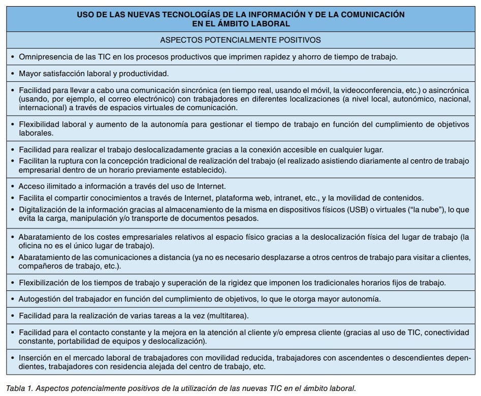 Desde la aparición del primer ordenador y el teléfono móvil, las TIC han evolucionado de manera vertiginosa, desarrollándose nuevos dispositivos portátiles (como el “Smartphone”, la tableta, etc.) y aumentado el número de trabajadores que las usan de manera cotidiana, generalizándose su uso en el ámbito laboral, normalizándose en la interacción con los compañeros de trabajo, clientes, jefes, etc., así como en el desarrollo de la actividad laboral y la organización del trabajo.