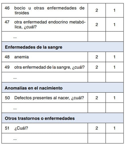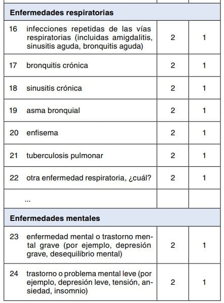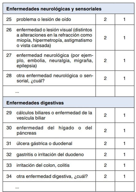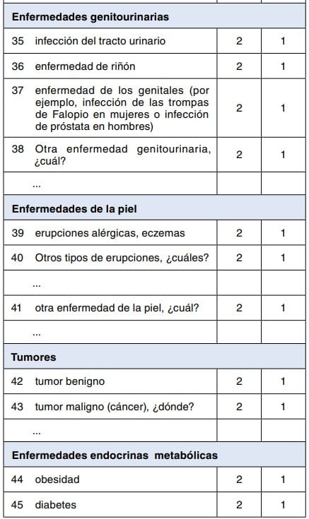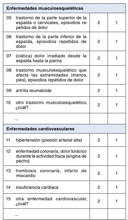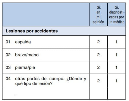 Para cada enfermedad o lesión, por tanto, puede marcar dos alternativas, solo una o ninguna si no tiene esa enfermedad o lesión.