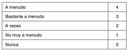 El WAI cubre siete dimensiones, cada uno de las cuales es evaluada en función de una o más preguntas. Se calcula sumando los valores asignados en la Tabla 2.