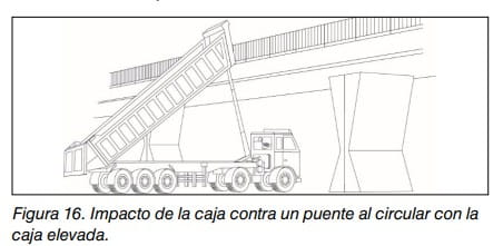 - vuelco o desplome de la caja al impactar contra estructuras elevadas;