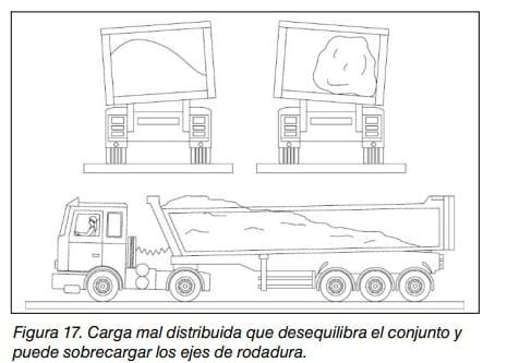 - vuelco al no desalojar la carga durante la basculación por quedarse ésta atascada con el portón o con la carga depositada en el suelo; – vuelco por no deslizar la carga de manera regular (carga pegada a las paredes) y formarse una carga desequilibrada;