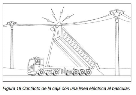 - contacto con líneas eléctricas aéreas al bascular (véase, figura 18);