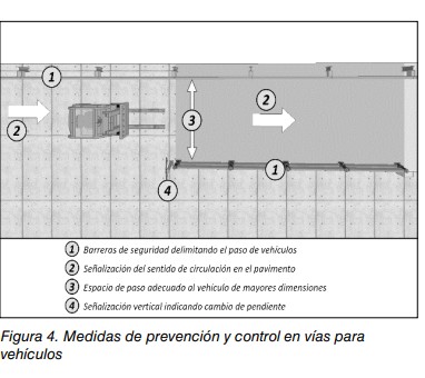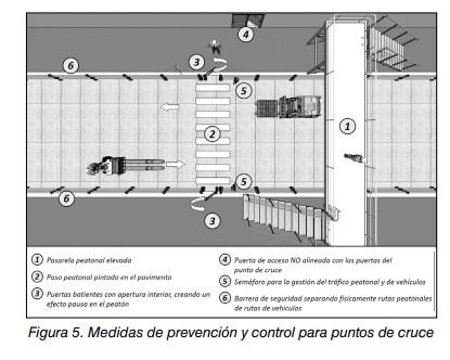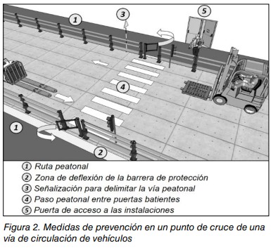Una de las formas de evitar o minimizar su materialización es mediante el diseño coherente y adecuado de las distintas áreas de trabajo, segregando adecuadamente la confluencia entre vehículos y peatones.
