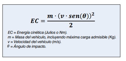 La resistencia de la barrera a emplear debería ser superior a la energía cinética del vehículo. En el cálculo de la energía cinética se recomienda considerar los datos correspondientes a la máxima carga del vehículo, su máxima velocidad y el ángulo de impacto.
