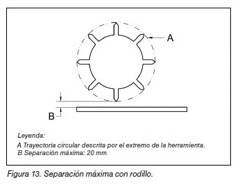 Con objeto de impedir, en la medida de lo posible, el acceso al componente de picado cuando los componentes de alimentación no están funcionando, debe existir una separación máxima de 20 mm entre: