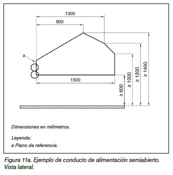 - Tener una altura vertical de 1 200 mm desde la plataforma del conducto de alimentación hasta la parte inferior de la estructura.