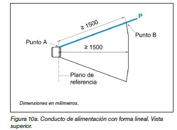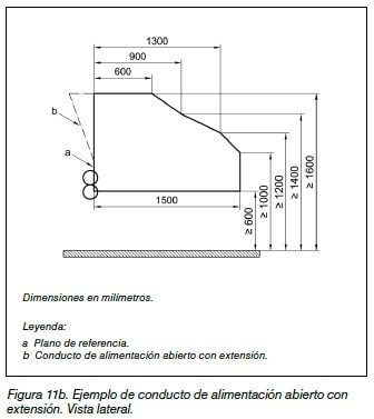- La distancia vertical desde la plataforma del conducto de alimentación debe ser como máximo 1 200 mm (figura 7).