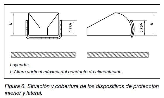 El dispositivo de protección lateral debe estar instalado a cada lado del conducto de alimentación, extendiéndose como mínimo un 75% de la altura vertical máxima del conducto de alimentación (figura 6).