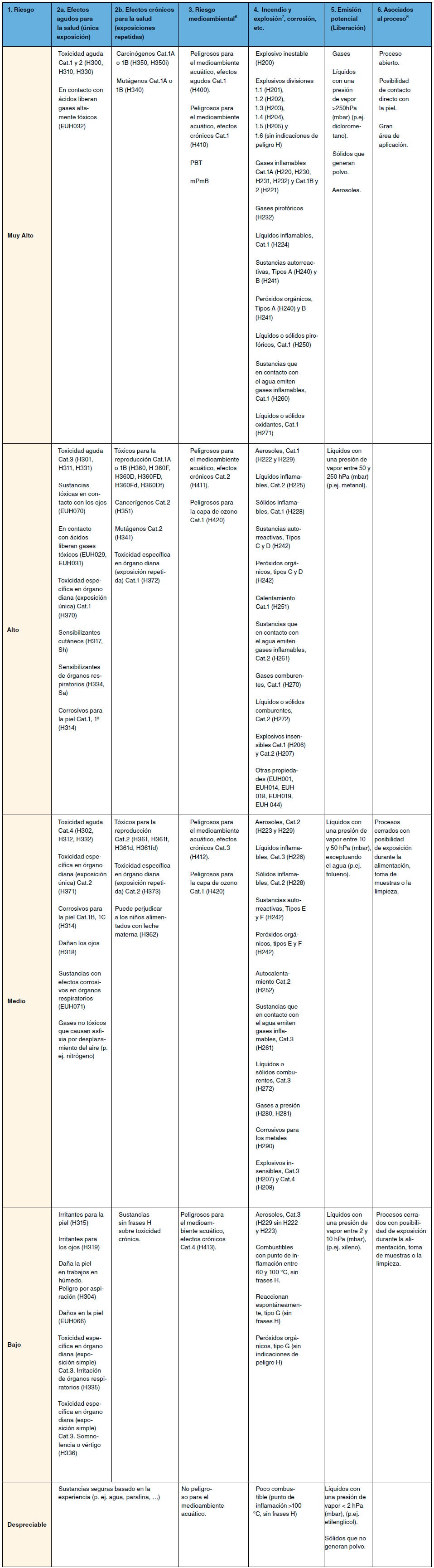 8 En esta columna el modelo original menciona la serie de normas TRGS500 alemanas, relacionadas con la clasificación de los procesos.