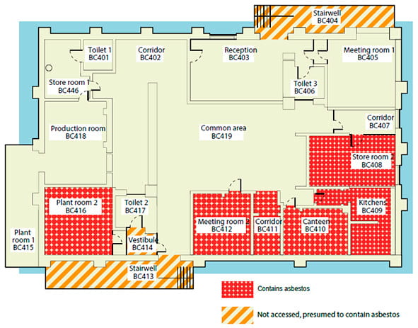 Figura 5. Ejemplo de mapa de localización en un emplazamiento. Fuente: Asbestos: the survey guide, HSE (2012).