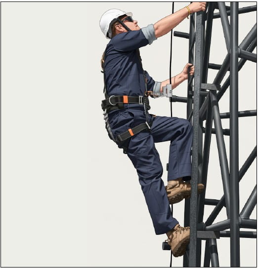 Figura 11. Ascenso a torre utilizando un dispositivo anticaídas deslizante sobre línea de anclaje flexible.