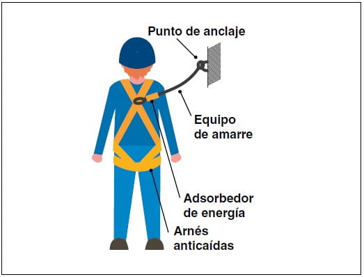 Todos los sistemas de protección individual contra caídas mencionados anteriormente están constituidos por los siguientes componentes: un dispositivo de prensión del cuerpo, un sistema de conexión y un punto de anclaje. El uso de uno u otro equipo correspondiente a cada componente del sistema dependerá del uso previsto de este.