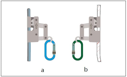 Figura 7. Dispositivos anticaídas deslizante sobre línea de anclaje flexible (a) cable (b) cuerda.