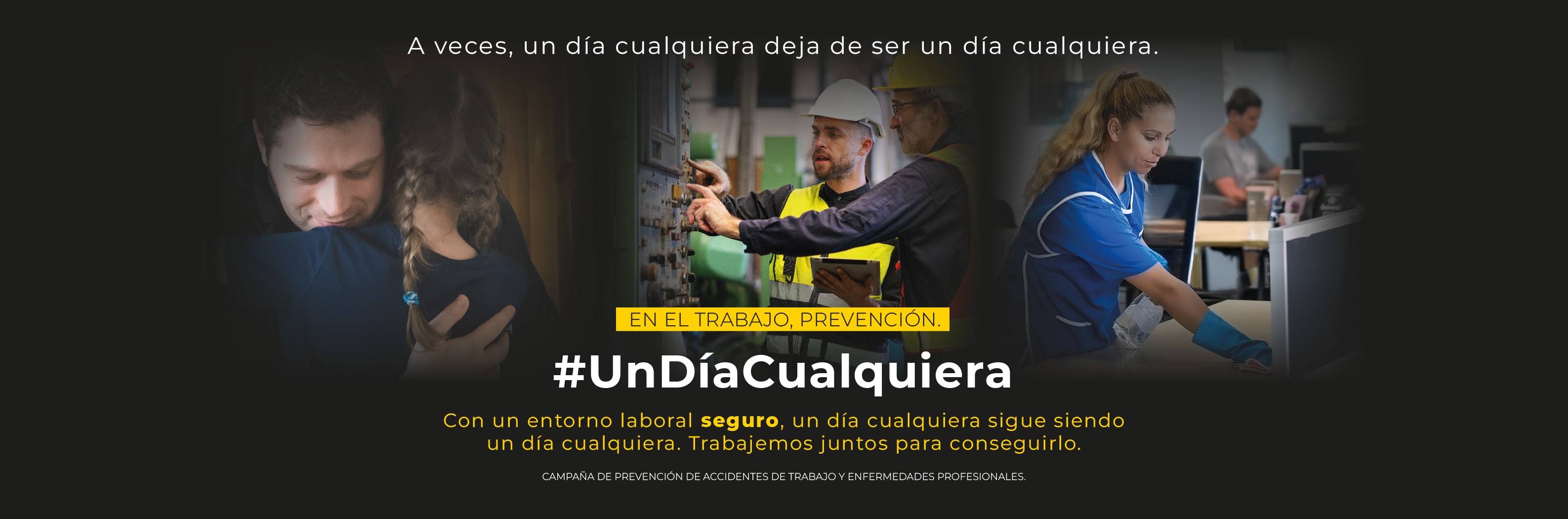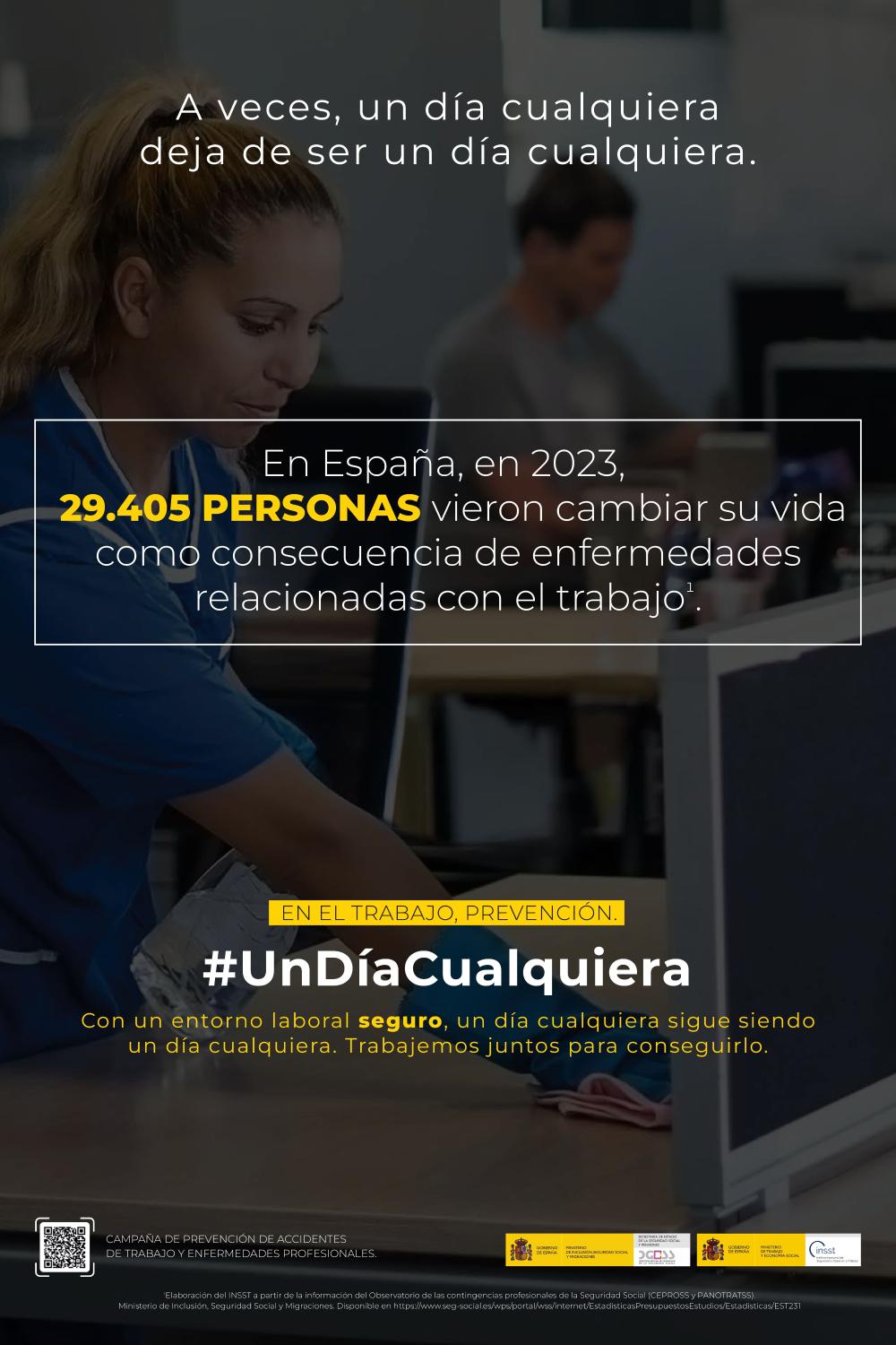 Por todo ello, la campaña #UnDíaCualquiera, promovida en el marco de la Estrategia Española de Seguridad y Salud en el Trabajo 2023-2027, se lanza con el objetivo de reducir las actuales cifras de accidentes de trabajo y enfermedades profesionales y para ello cuenta con la colaboración de los principales agentes implicados en la mejora de las condiciones de seguridad y salud en los entornos laborales.