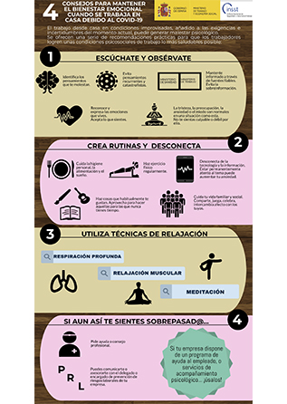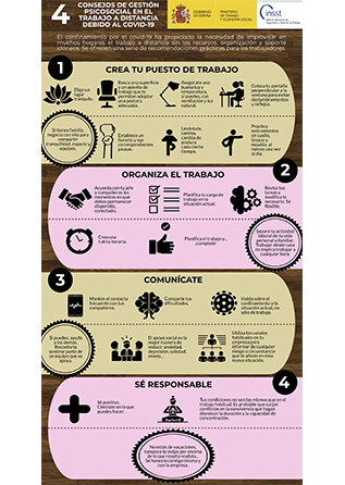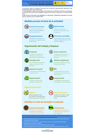 Los trabajadores que forman parte de las consideradas como actividades esenciales, cuya continuidad debe garantizarse en la situación de estado de alarma (Real Decreto 463/2020), deben poder realizar su actividad con las adecuadas medidas de prevención y protección. Es por ello que el INSST ha elaborado una serie de documentos e infografías recogen una selección no exhaustiva de medidas para garantizar la protección de la salud de los trabajadores frente a la exposición al coronavirus SARS-CoV-2.