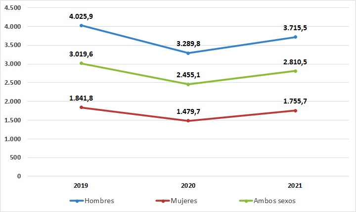 | 25 a 44 años | 3.839,0 | 1.649,7 | 2.801,0 |