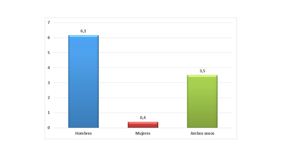 El índice de incidencia de ATJT mortales en los hombres (5,9) es quince veces el índice en las mujeres (0,4).