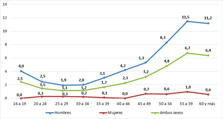 | 45 años o más | 8,8 | 0,5 | 5,0 |