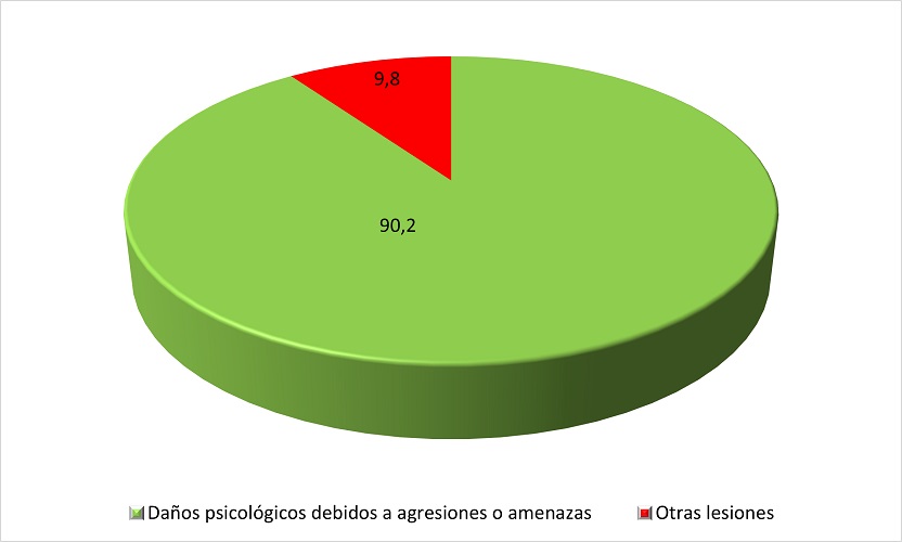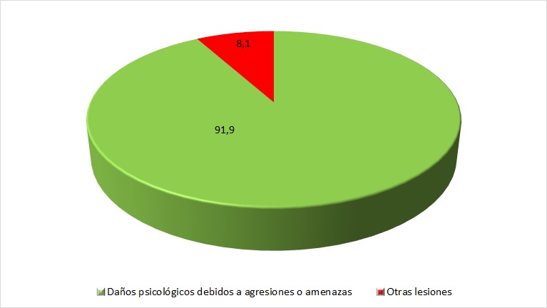 El 84,4% de los ATJT por trauma psíquico sufrieron como lesión el daño psicológico debido a agresiones o amenazas.