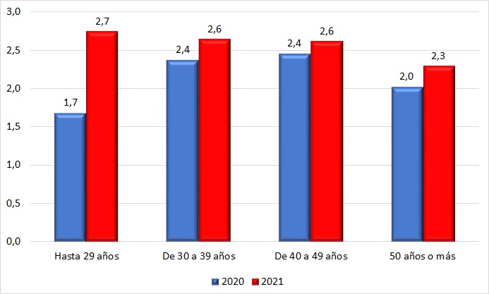 | HOMBRES | Hasta 29 años | 43 | 1.599.310 | 2,7 |
