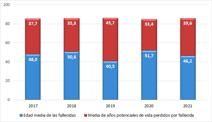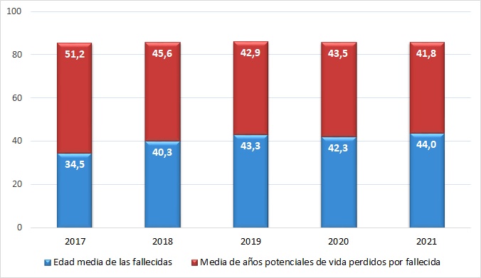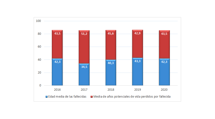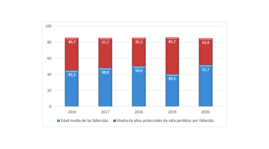 Este indicador permite visibilizar el coste humano y social que suponen los accidentes de trabajo mortales, a través del análisis de la esperanza de vida a la edad del fallecimiento de los/as trabajadores y trabajadoras.