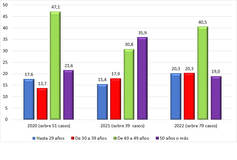 Respecto a la edad, en 2024 el 32 % de las personas en las que se notificó un trastorno metal tenían entre 40 y 49 años. A este grupo, le siguió en representatividad el colectivo de 50 años en adelante (un 28 % del total de trastornos mentales notificados). Datos semejantes al año 2022. Sin embargo, en 2023, el rango de 50 años o más ocupó la primera posición (42 % del total de trastornos mentales notificados) y a medida que la edad disminuye lo hicieron a su vez los casos de trastornos mentales en este año.