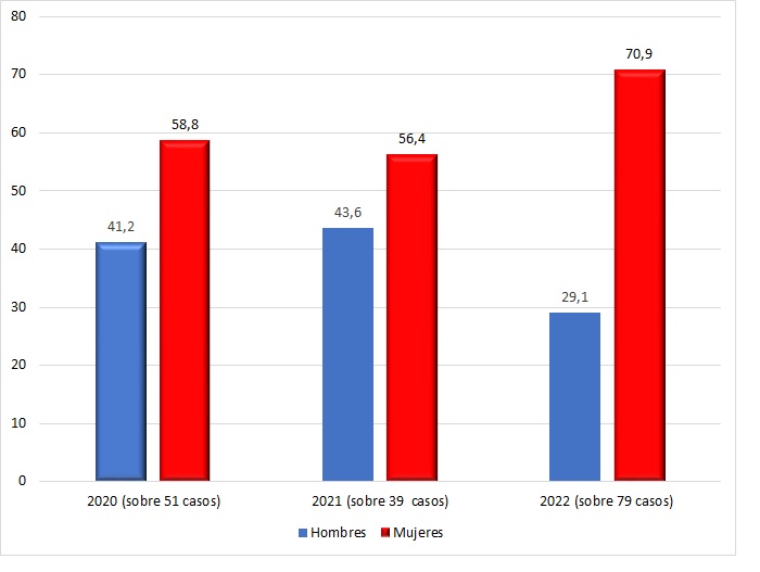La gran mayoría de los desórdenes mentales del periodo analizado cursaron con baja; en concreto, el 54,1 % en 2024, el 67,9% en 2023 y el 70,7 % en 2022.